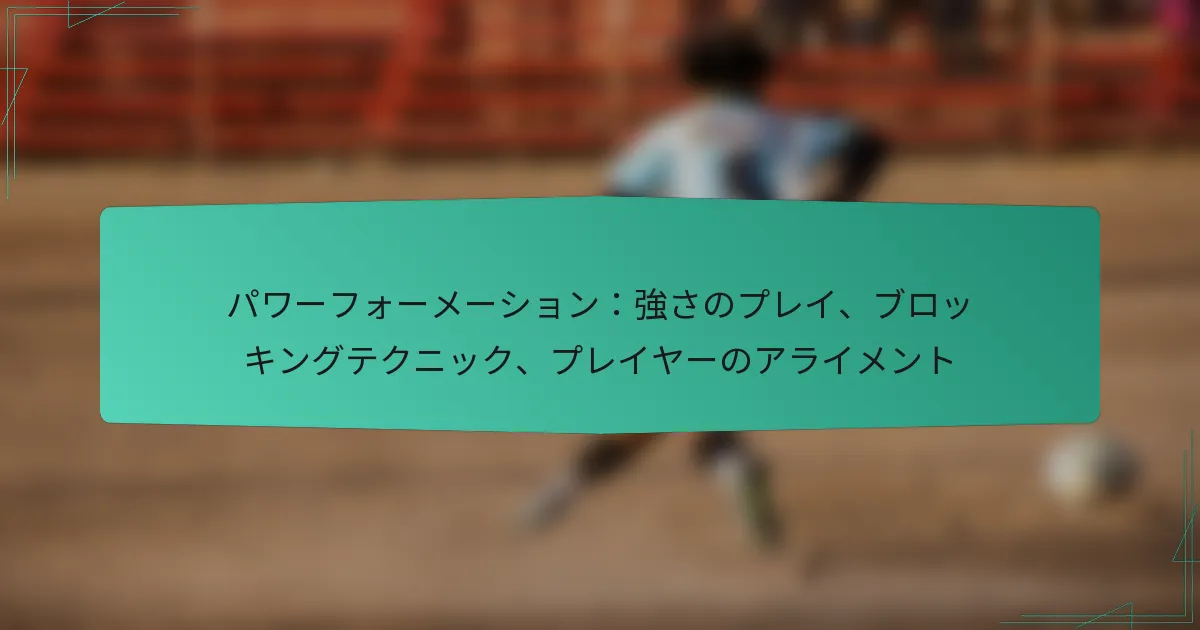 チームスポーツにおけるパワーフォーメーションは、選手を戦略的に配置し、ゲームプレイ中の強さとコントロールを高めることを目的としています。強さのプレイや効果的なブロッキング技術を活用することで、チームは成功する攻撃および防御の動きを促進する有利な状況を作り出すことができます。選手の配置とブロッキングをマスターすることは、パフォーマンスを最大化し、ボールキャリアを守るために重要です。