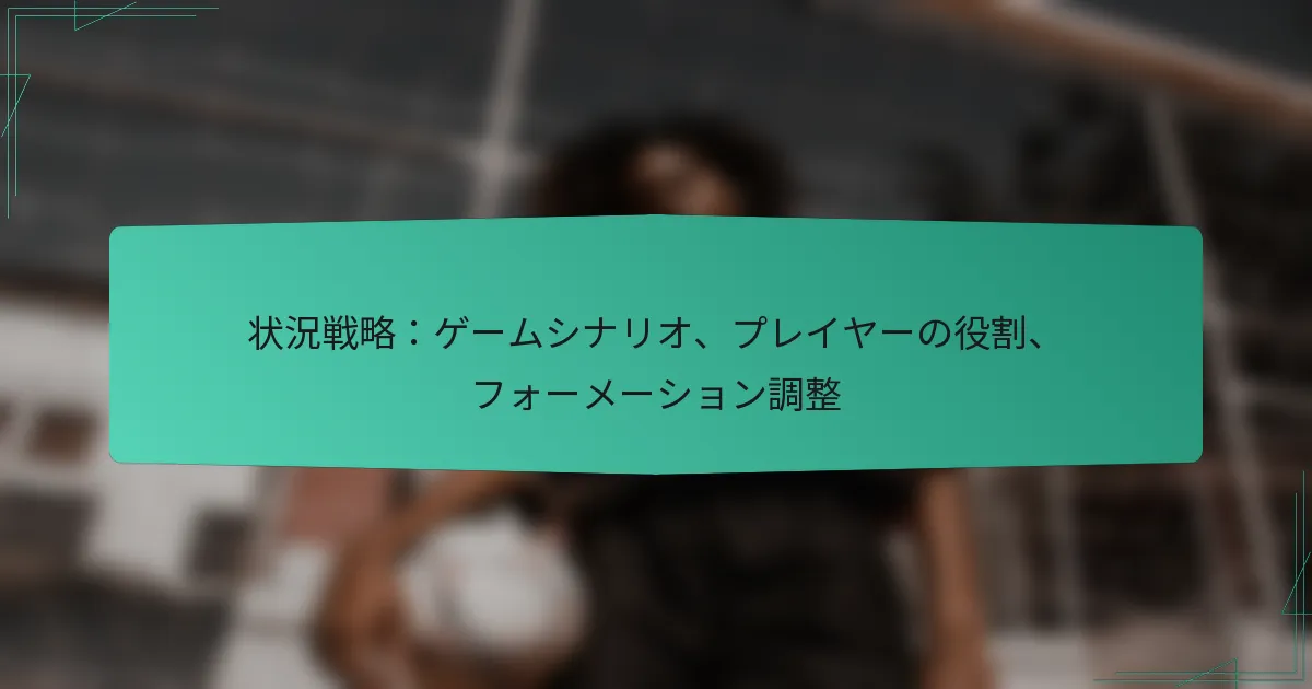 スポーツにおいて、状況戦略は試合中に発生する動的な課題を乗り越えるために重要です。重要なシナリオを分析することで、チームは戦術を適応させ、選手の役割を最適化し、全体的なパフォーマンスを向上させることができます。さらに、選手の効果や相手の戦略に基づいてリアルタイムでフォーメーションを調整することは、試合の結果に大きな影響を与える可能性があります。